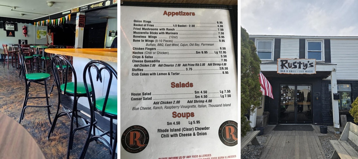 Discover Rusty's Bar & Grill in Middletown, RI! Enjoy affordable drinks, delicious fries, and a lively dive bar atmosphere. Join us for karaoke and pool, all just steps from the beach. Visit us at 44 Wave Ave or call +1 401-846-3357 for a fun night out!